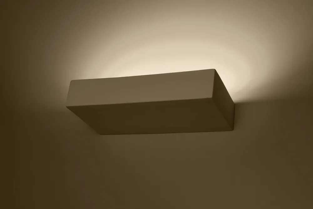 Das Licht der Wandleuchte schein nach oben (Uplight), was eine indirekte Beleuchtung erlaubt: ideal in Wohnzimmer, Flur und Treppenhaus