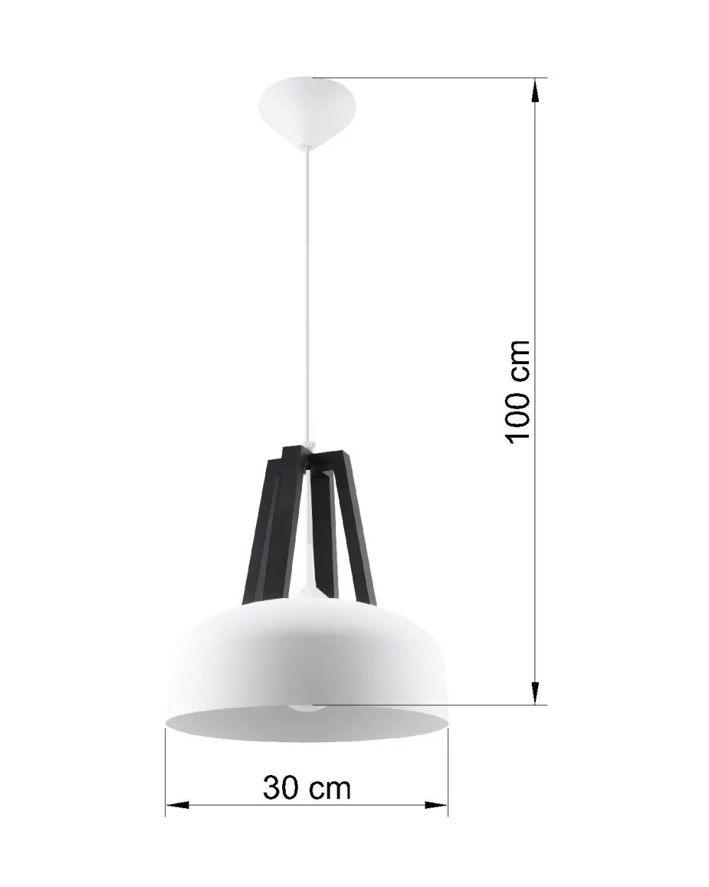 Weiße Retro Hängeleuchte aus Stahl und Holz