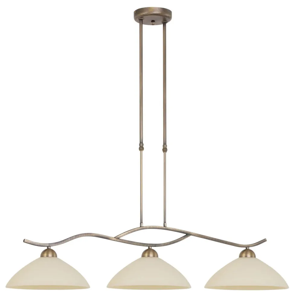 Klassische Deckenlampe aus Metall und Glas in Bronze und Creme