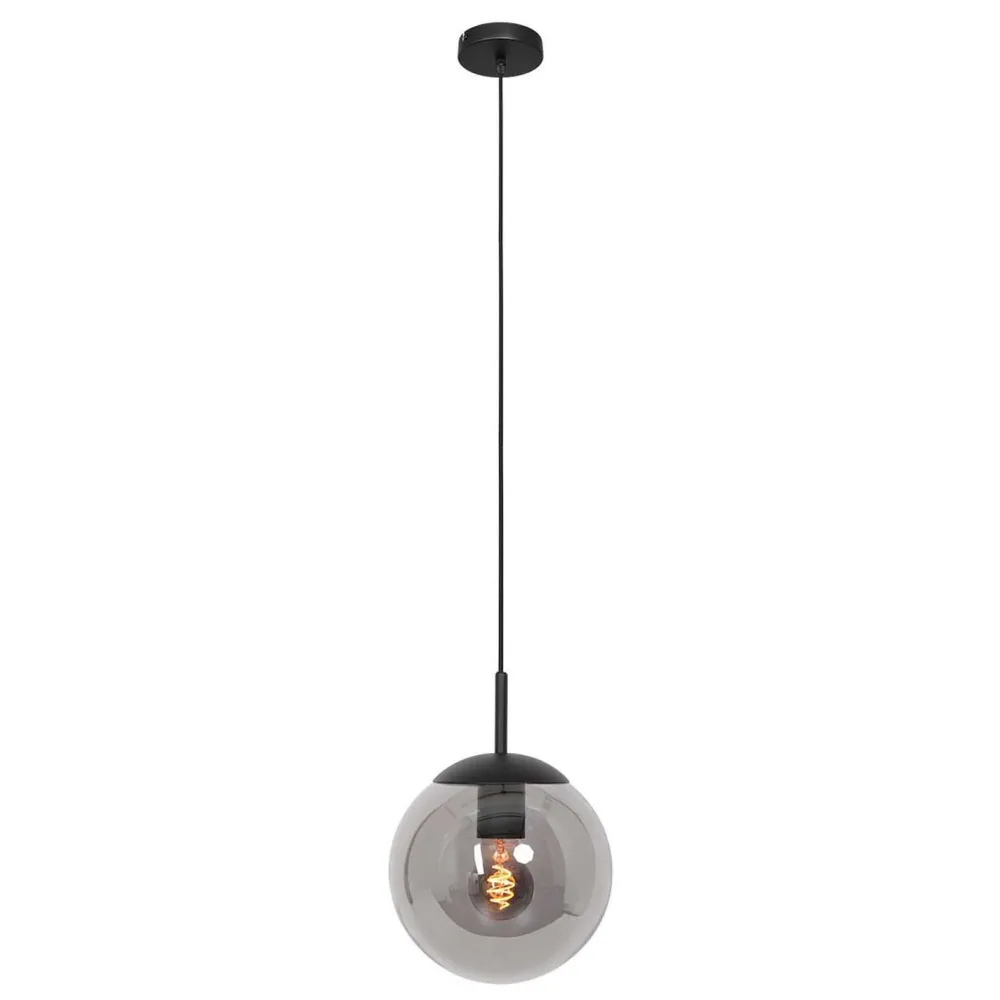 Moderne Pendelleuchte aus Metall und Glas in Schwarz und Rauchgrau