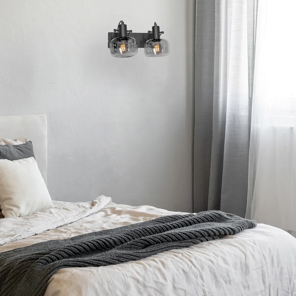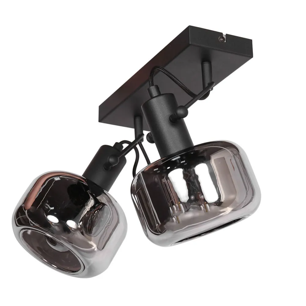 Moderner Deckenspot aus Metall und Glas in Schwarz und Rauchgrau