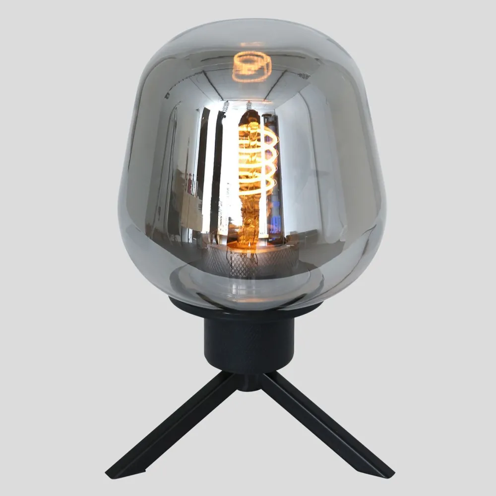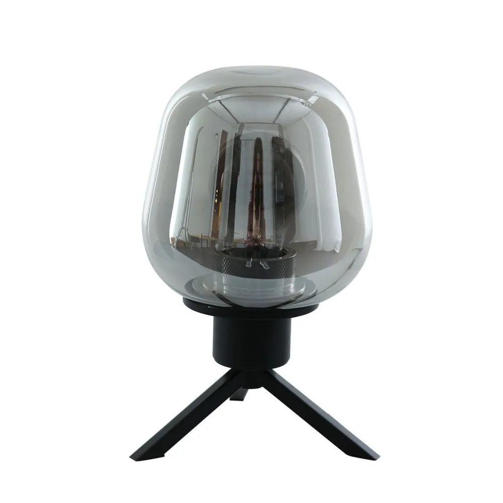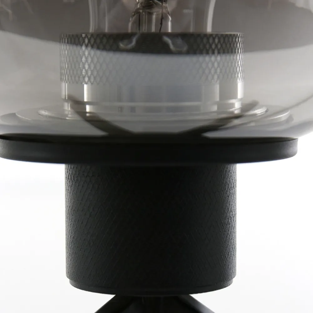 Moderne Tischleuchte aus Metall und Glas in Schwarz und Rauchgrau