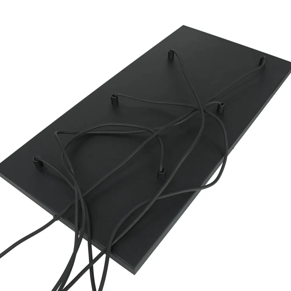 Die 6 Pendel sind versetzt angeordnet, sodass die Hängeleuchte eine breite Grundfläche bildet – perfekt für große Räume oder über einem breiten Esstisch