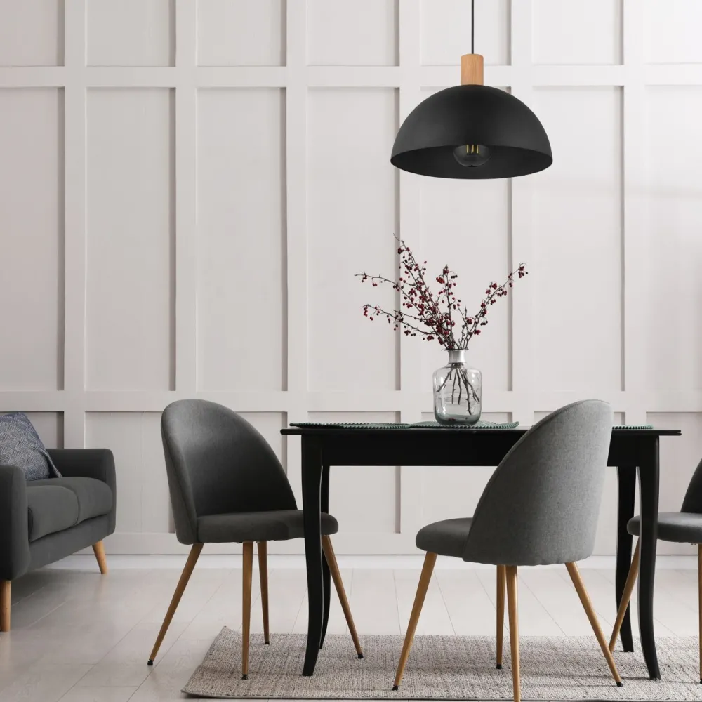 Dekorative Elemente aus Holz machen die Hängelampe zu einem zeitlosen Klassiker für das Esszimmer, die Küche oder das Wohnzimmer