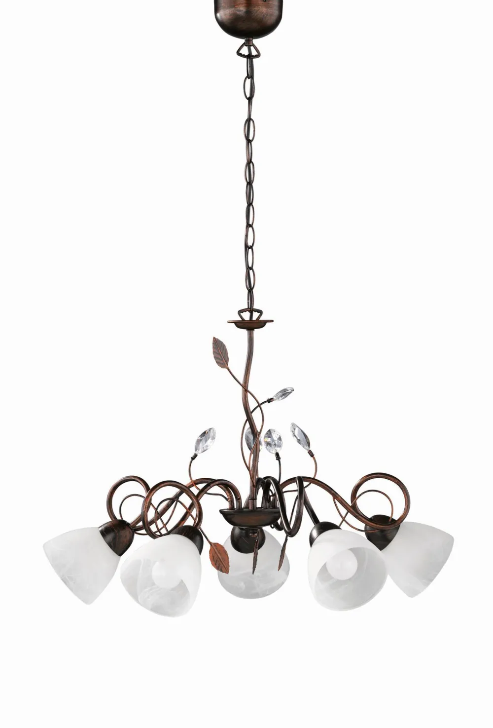 Florale Hängelampe aus Metall und Glas in Rost Antik