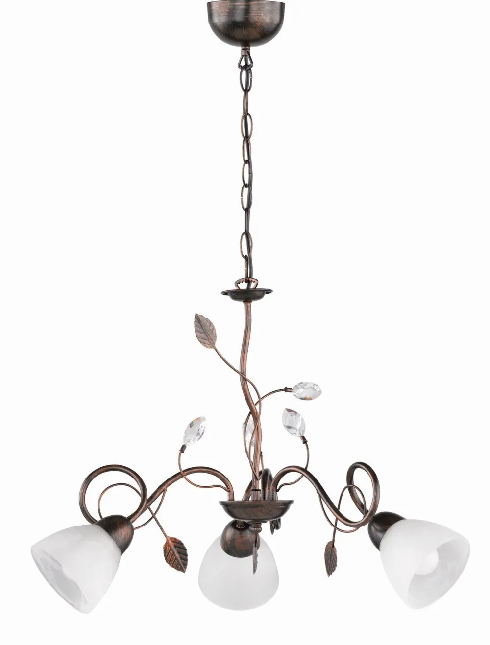 Florale Hängelampe aus Metall und Glas in Rost Antik