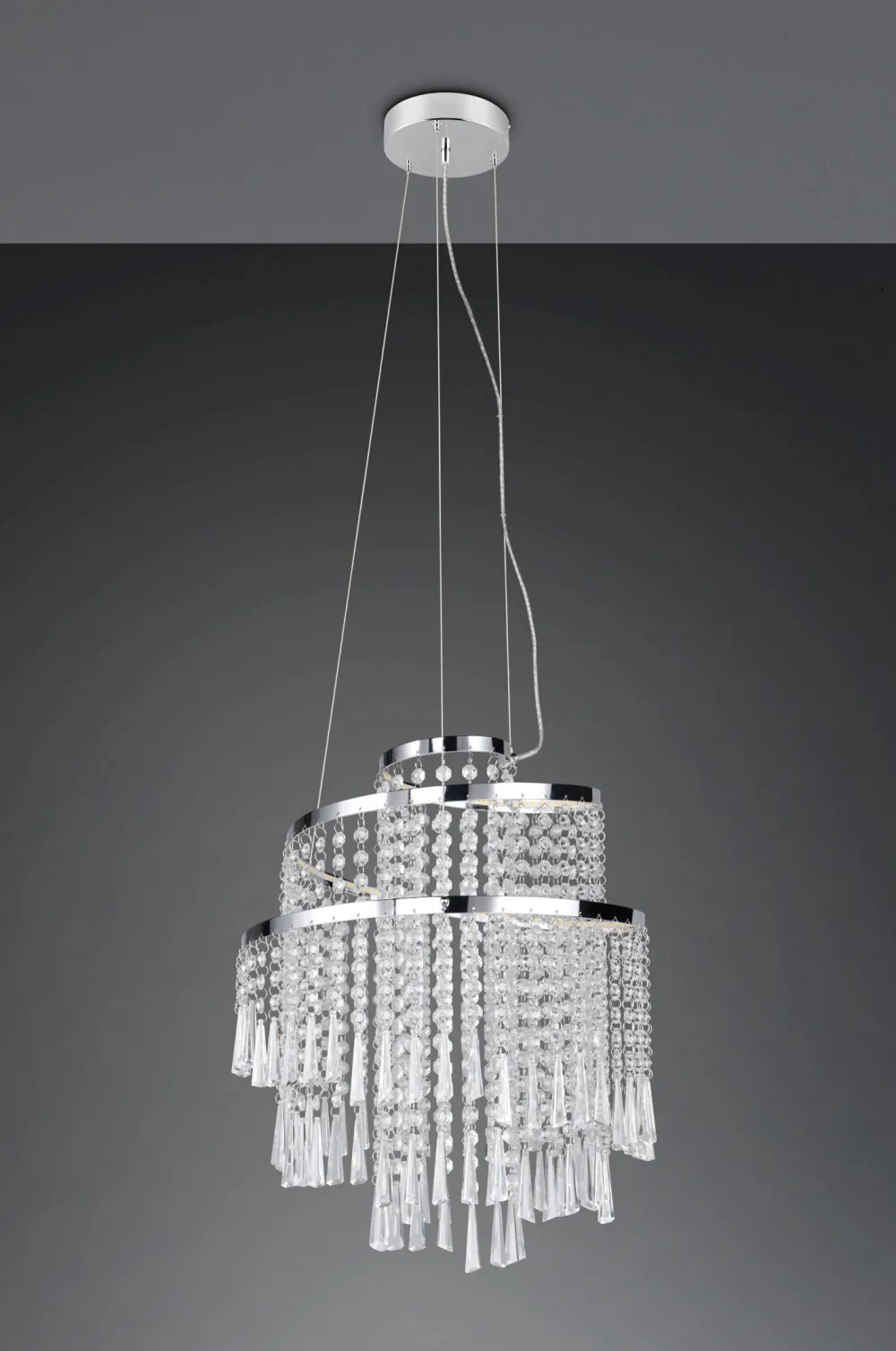 Moderne LED Pendelleuchte aus Metall und Acrylglas in Chrom