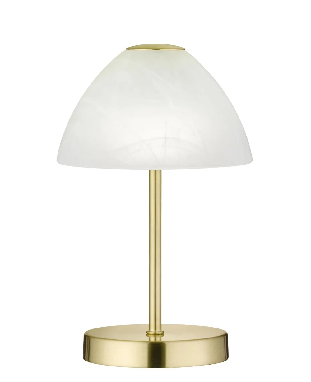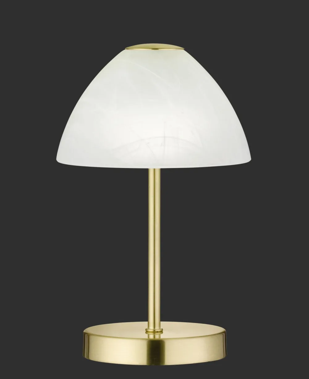 Moderne LED Tischlampe aus Metall und Glas in Messing